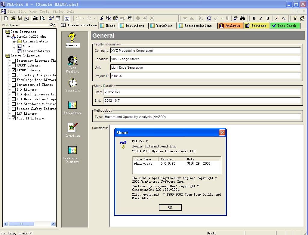 HAZOP是一款世界上销量第一的针对过程危险分析开发的软件, 全世界范围内数以万计公司所采用的标准HAZOP( Hazard and Operability) 工具。它为使用者提供HAZOP、LOPA、SVA 等化工过程危险性分析方法的指导, 不仅使使用者容易上手, 而且为使用者提供了大量较低风险的资讯。应用PHA- Pro 指导安全分析可以进行危险辨识并期望降低危险的发生, 提升分析效率, 因此被广泛地应用于石油化工、国防与航空安全、核电安全、工业安全卫生等行业。